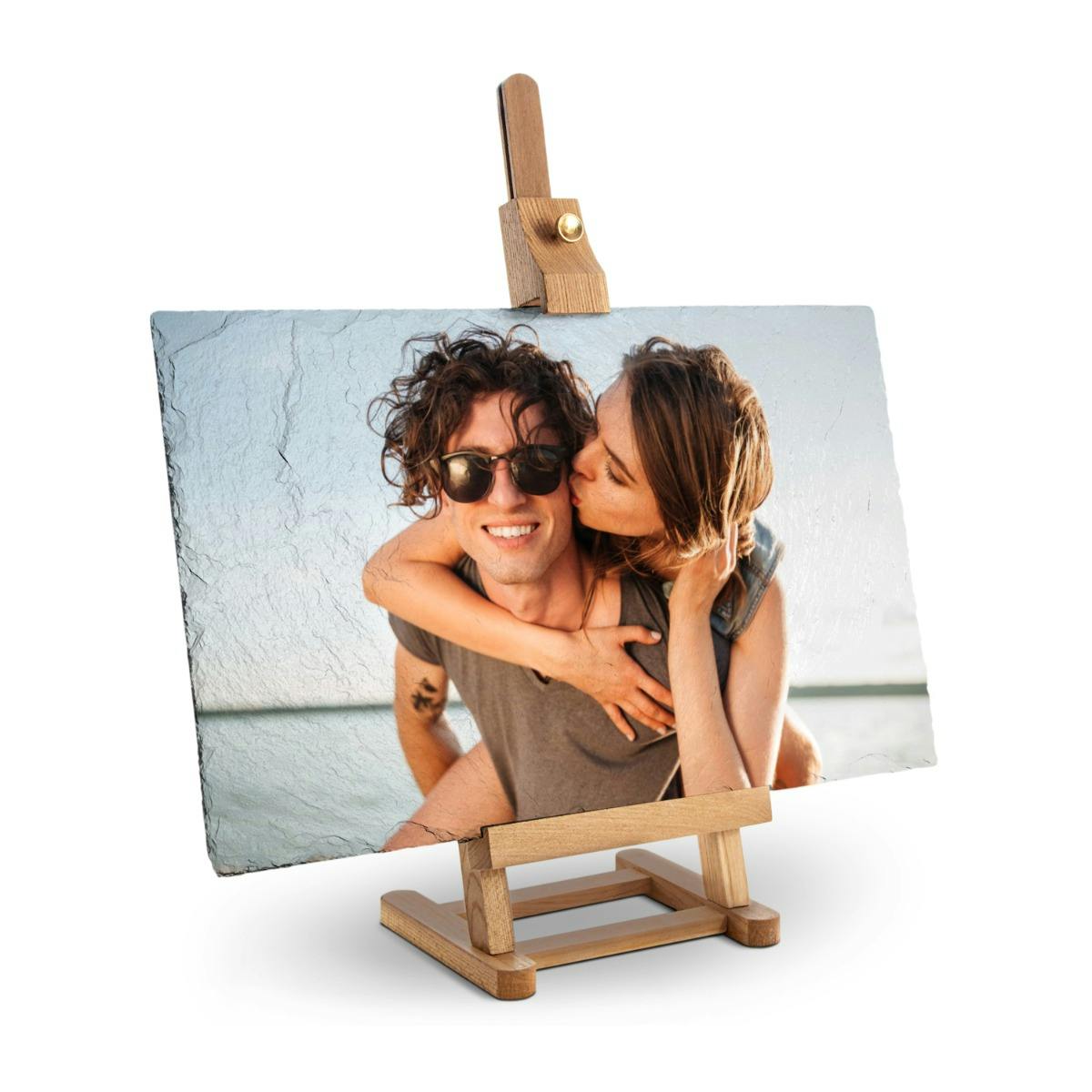 Die außergewöhnliche Deko-Idee: Dein Foto auf einer echten Natur-Schieferplatte mit Staffelei.